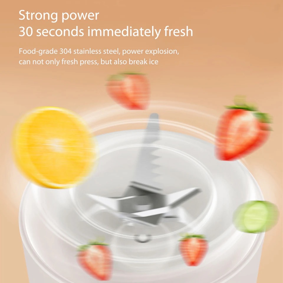 The Mixxit Portable Blender has a powerful motor, ensuring all ingredients are ground in no time so you can immediately enjoy a juice, shake, or smoothie. Due to the 4 strong stainless steel blades, ice or frozen fruit can also be added to your shake.